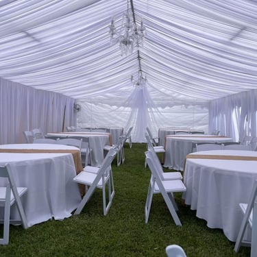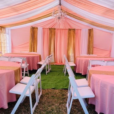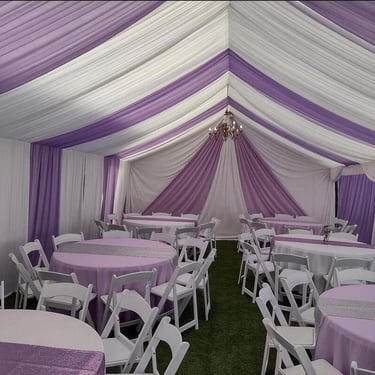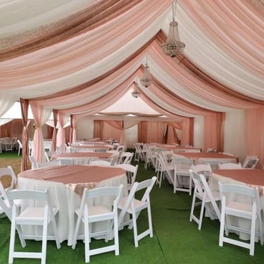 Tent draping rentals near me can transform the interior of your tent, creating a stunning, personalized atmosphere. Choose from a variety of colors and fabrics to complement your event's theme.